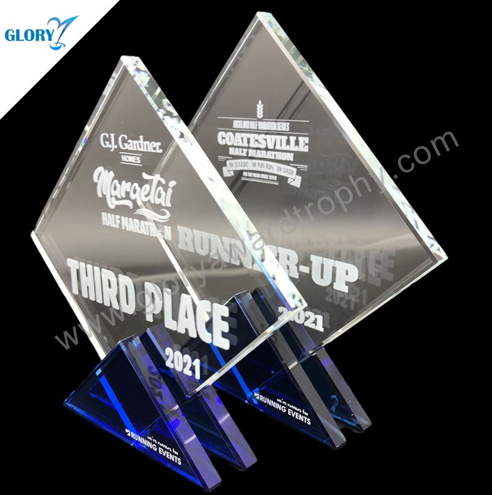 Glass crystal trophy Metal Stautes Medal can be customzied