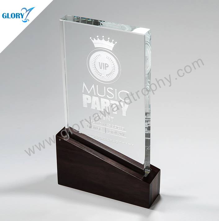 Crystal Glass Wood Trophy for Souvenirs