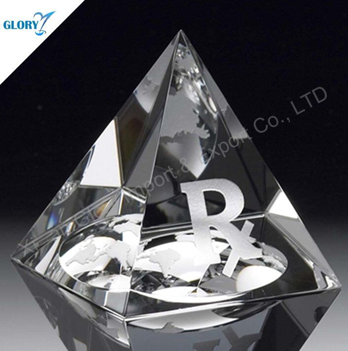 Quality Pyramid Shape Crystal Glass Paperweight quantity